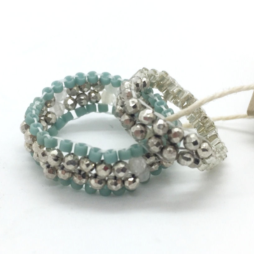 Aquamarine Sparkly Stitched Ring Set by Petite Sunflower Shop